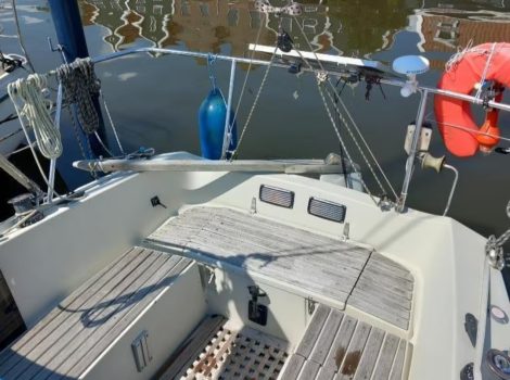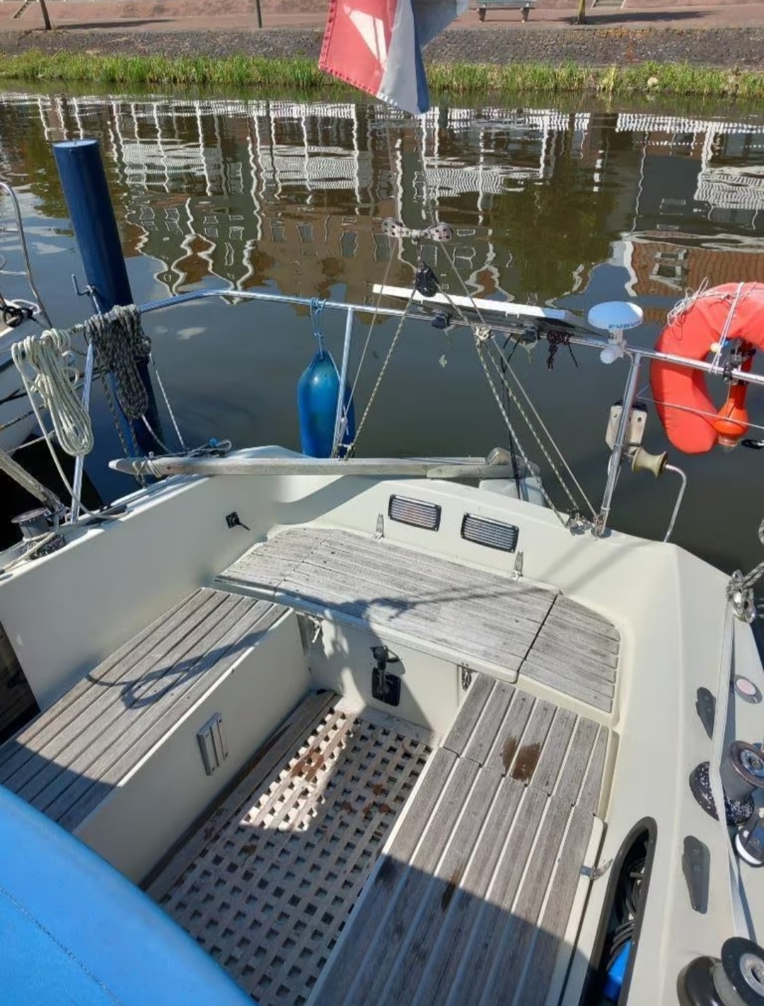 Kompas-log-dieptemeter-origo 3000 kooktoestel-watertank rvs 100lt met mangat-dieseltank 55lt rvs met brandstofmeter-zwemtrap-Delta anker (12 kg) met ketting 15 mt voorloop en alu Fortress anker-Lagun tafelsysteem voor in de kuip met teak tafelblad.