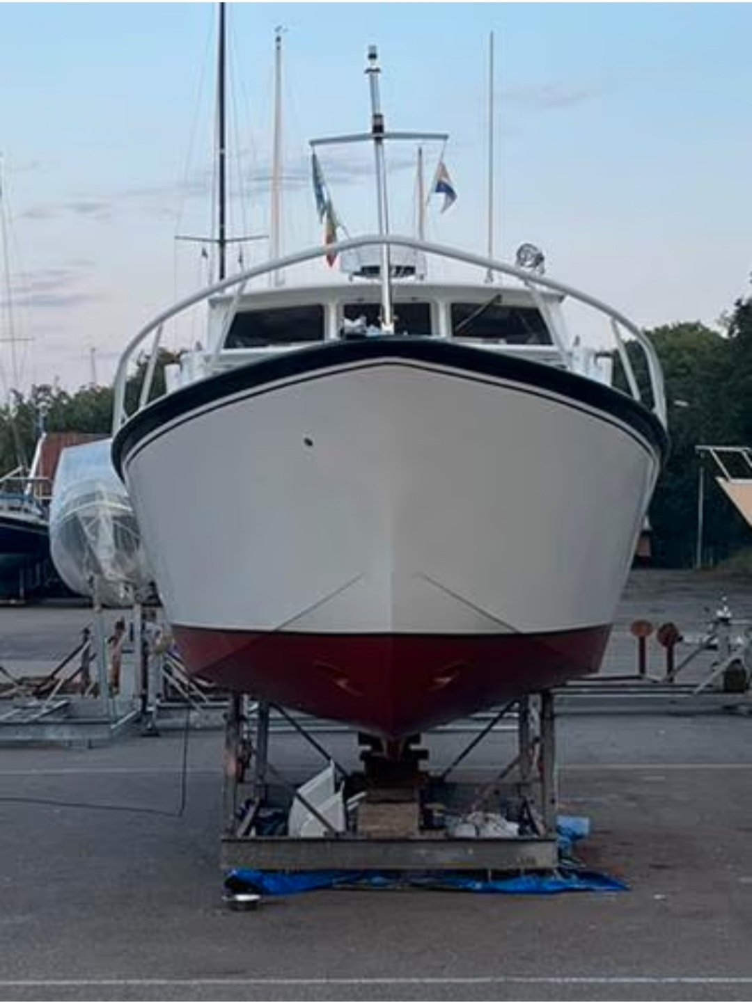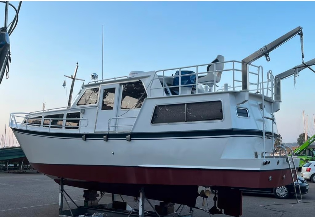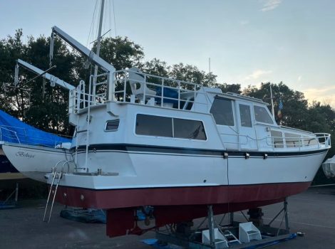 Van der Valk type hekkruiserAluminium ramen + gelaagd getint glasSlaapplaatsen: 2 vast + 2 in achterkajuit (kindjes)Mogelijkheid tot 2 extra (zithoek)Lengte 10m, breedte 2m95, diepgang 090Motor: Ford Major 2700 – 80 pk – 4 cilinderVetus boegschroefBinnen + buiten besturingnieuwe druppelaar + 3 accu’sRaymarine kaartplotter + radarDometic compressor koelkastBoretti 4-pitsfornuis (gas)Planar standkachelRVS uitschuifbare zwemtrap aan spiegel/zwmplateauRVS Davits aanwezigBoot volledig opnieuw in de lak gezet + antifouling + zinkanodes gemonteerdinterieur foto’s volgen