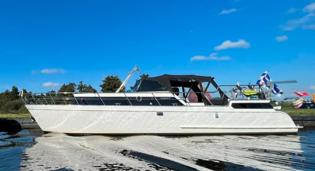 Wat is er onder andere nieuw;- motor met toebehoren zoals python drive, schroefas met schroef, enz.-roer-stuur, stuurpomp en stuurcilinder-hekschroef-Zwemplateau met mooie ronde romp verlenging-dekwaspomp, drinkwaterpomp en bilgepomp met vlotter-rvs vuilwatertank 180 liter met vermalingspomp-rvs diesel tank 200 liter-kachel (hetelucht op diesel)-anker en rvs ketting bak-koelkast dometic-accu pakket totaal 7 accu’s-victron omvormer 2000 watt met controler en smartshunt-stuurkast aluminium met dashboard en morse hendel-kussensets cognac met ruitmotief-matrassen beste kwaliteit die er te krijgen is-gordijnen-vloeren hpl-rvs railing, davits en mast-opboeisel met rvs bovenrand-hek douche met thermostaat (verwarmt door motorboiler)-twee componenten verf IJssel-toilet-tent met geïntegreerde gordijnen en hor-dimbare ledverlichting