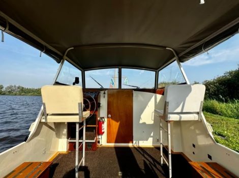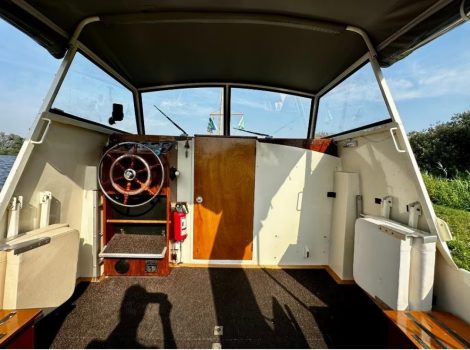 Stuurhut:In de stuurhut zijn 2 opklapbare comfortabele lederen stoelen en achterin bevindt zicht een comfortabele bank, die tevens als extra bed kan worden gebruikt. De tent is volledig vervangen in 2020 en alle naden zijn in juni 2024 opnieuw gestikt. De tent kan volledig dicht maar kan met lekker weer ook helemaal open worden gemaakt.