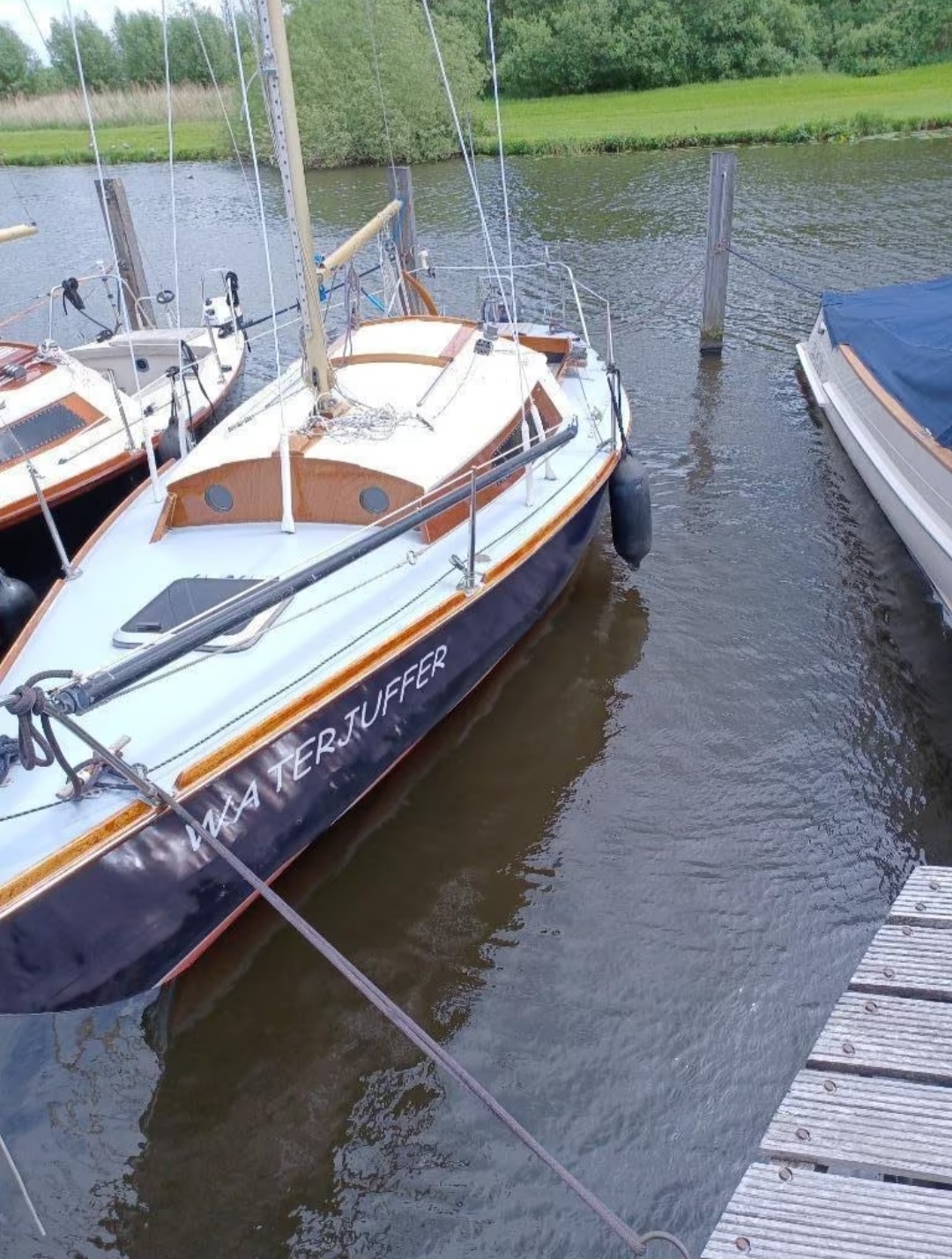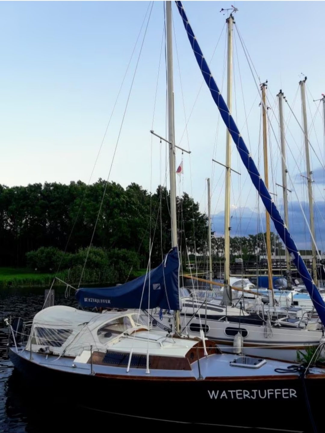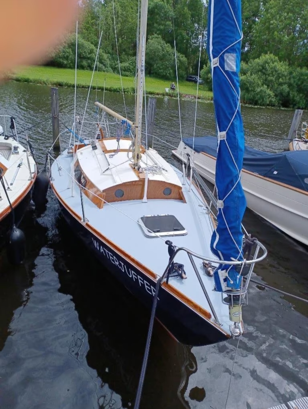 Dit authentiek Waarschip 725 “waterjuffer” in zeer goede staat, is een waar genot voor een echte liefhebber.Deze kwarttonner is technisch zeer goed onderhouden. Elke winter uit het water in de winterstalling geweest tevens voor onderhoud.Onder andere beschikt dit schip over n nieuwe helmgatskoker, 2 nieuwe accu’s, nieuwe rolfok van Helgoorts Sails.Verder uitgerust met een gereviseerde Yamaha 9.9 langstaart high trust met afstandsbediening en elektrische start, 2 x benzine tank 10 ltrbuiskap met aanritsbare kuiptent. Grootzeil en spinaker inclusief. De romp en het dek in epoxy. (jaarlijks onderhouden)Zwemtrapje – stootwillen – hekstoel Kiel – 120 cmStuurautomaat st 2000Garmin GPS navigatieMarifoon 2 fenders Paraplu anker Danforth ankerInterieur in zeer goede staat en mooi in de lak. Uitgerust met wasbak met voetpomp (water via waterzak) 2 pits gastoestel toilet onder trap