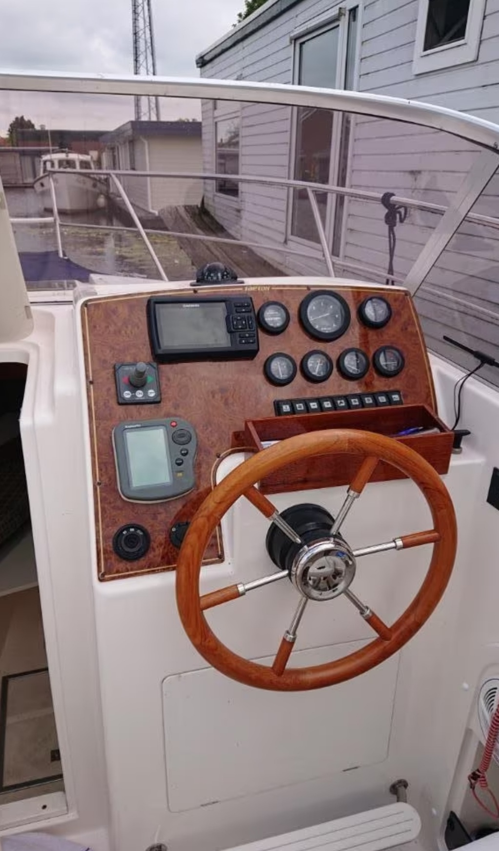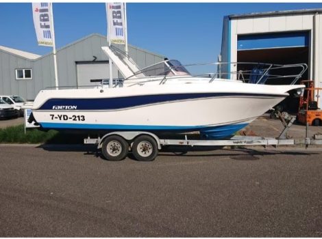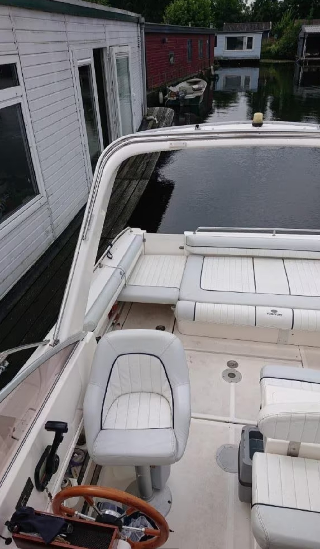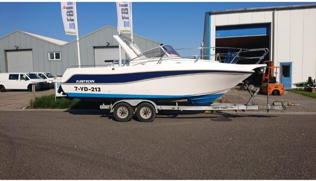 Sportboot Faeton 7.30 2003Motor: Mercruiser 6 cil 220 PK benzineBedrijfsuren: 400 UurHekdrive gereviseerd 2024Voorzien van course ceeperGarmin 2024Toilet2 a 3 SlaapplekkenWalk aroundElek ankerlierBoegschroefBuiten douche2x Wasbak