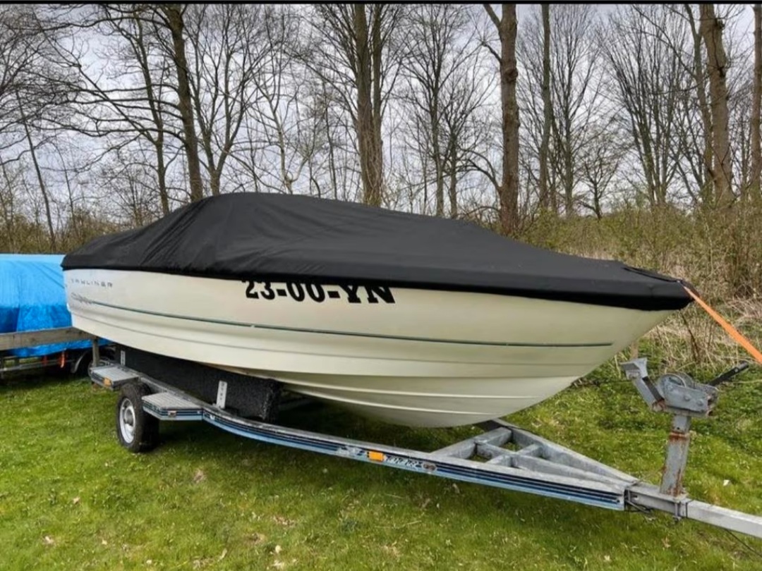 Afdekzeil, trailer, touwen, alles zit erbij.