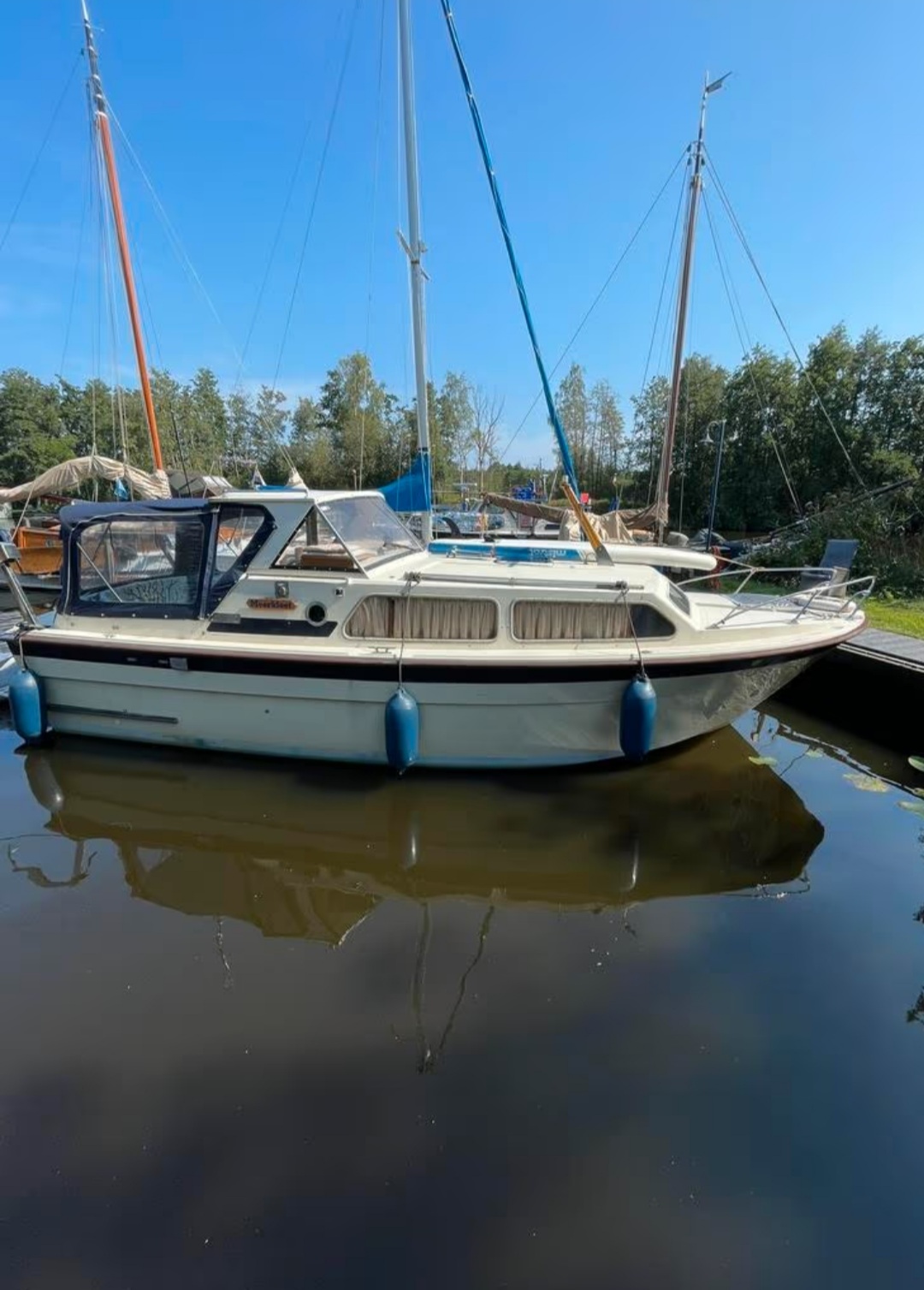 Nette Waterland 850 vaarklaar bj1978Afmetingen lengte 8,5 breedte 3,2 diepgang 0,7 sta hoogte kajuit 1,9