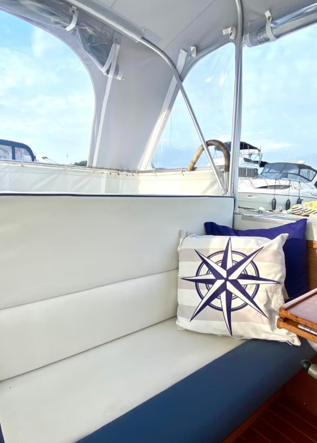 🛋️ Comfort & interieur:Nieuwe cabriotop: 2024Nieuwe inductiekookplaat & magnetron: 2024Beddengoed & matrassen: Vervangen in 2024, ongebruiktNieuwe anti-fouling: 2025Onderhoudsbeurt motor: 2025Onderhoudsbeurt algemeen: 2025Zitplaatsen: De boot biedt slaapplaats aan 6 personen. Prachtige, ruime rondzit (8-persoons), totaal 15 zitplaatsen.Electrisch toiletBoilerDiesel kachel