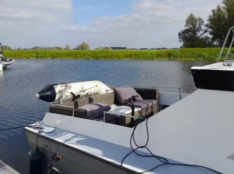 Heisa Craft. Bwjr. 1978. 8,5 t. 2 Timray dieselmotoren elk 50 pk. Nieuw geplaatst in 2016, 370 draaiuren. Verbruik bij 1700 toeren 2 tot 2,5 liter per uur per motor. Kruissnelheid 10 km/u. Boegschroef 2016. Flybridge met dubbele besturing. Biminitop 2022. Dekzeil 2022. Electra. 12V en 220V, vernieuwd in 2022.Victron omvormer/acculader 3000W met afstandbediening. 1 accu 100amp 2022. 1 accu 245 amp 2024. Boiler 40 liter, 2022 op koelwater en 220V. Waterpomp 2022. 3 bilgepompen. 1 voor, 1 achter en 1 nieuw in doos spare. Brandstoftanks RVS 360 lt. Watertank RVS 500 lt. 2 vaste slaapplaatsen in hut voorpiek. 2 banken om te bouwen tot ruime slaapplaats in salon. Badkamer met toilet en buitendouche bij zwemtrap, warm en koud water, 2024. Koelkast tafelmodel 220V. Gasfornuis aangesloten maar wordt niet gebruikt. Achterdek vernieuwd 2023. 2 zwemvesten volwassenen. 2 ankers. 1 rookmelder salon. 1 Co2 melder hut. 1 7 kg Co2 blusser geldig tot 2026. 2 poederblussers tot 2026. Garmin 924xsv. TV 40 inch, Alpha volgboot met 4 PK Yamaha en Jobea funkussen. 2 elektrische vouwfietsen plus laders.