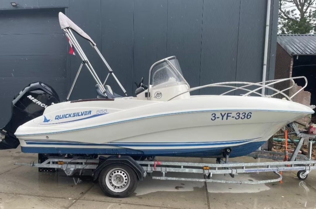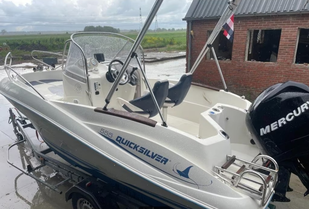 Goed onderhouden Quicksilver 555 comander bouwjaar 2008 met een 100 pk mercury efi buitenboordmotor inclusief 1500kg trailer met kenteken. Ideale boot om een dagje mee te vissen, varen met de familie of te watersporten .boot is goed uitgerust:2xaccubimiditop ( gemakkelijk demontabel)zelflozende kuipbilgepompvoorkant om te bouwen tot zonnedekdieptemeternavigatieverlichtingskipaalrvs schroef afdekhoes console + stoelen2x stootfendergroot opbergvak onder de consoleBoot is vaarklaar, heeft zijn onderhoudsbeurten gehad.voor vragen graag contact opnemen met 06-27327965