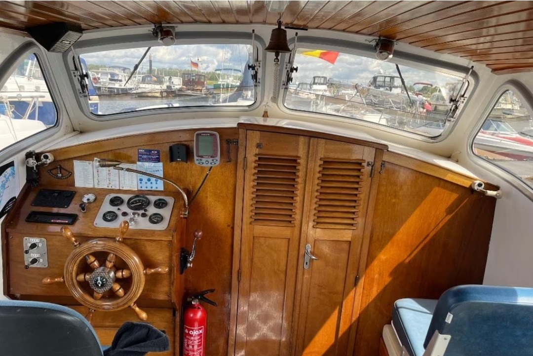 Goed onderhouden Tjeukermeer Cruiser 950 AK. Lengte 9,50 mtr lang en 2,80mtr breedte en diepgang 65 cm. Peugeot motor diesel 50pk en onderhouden door monteur.