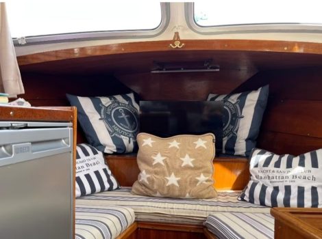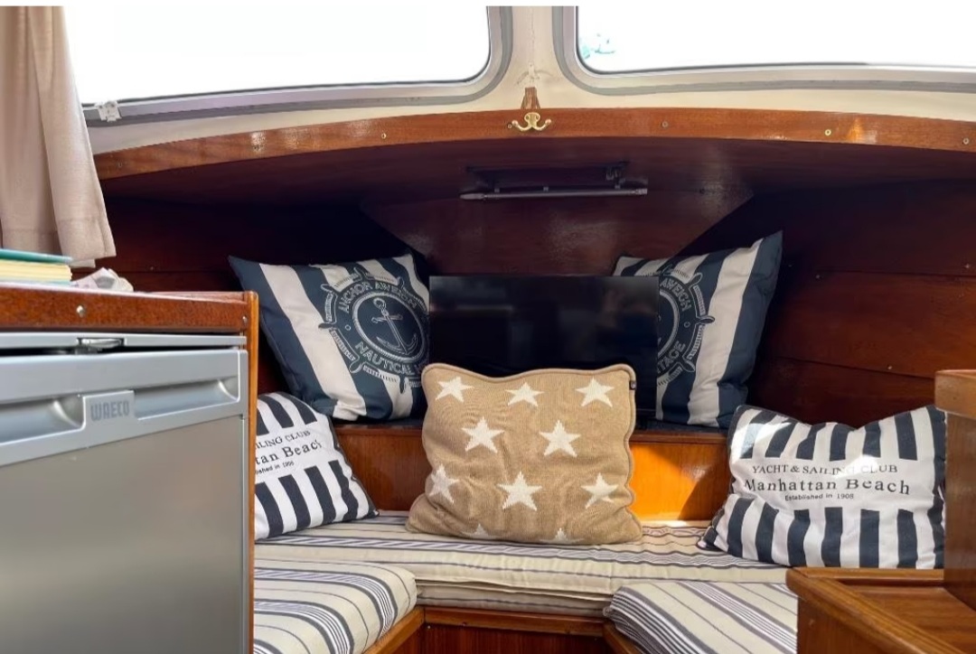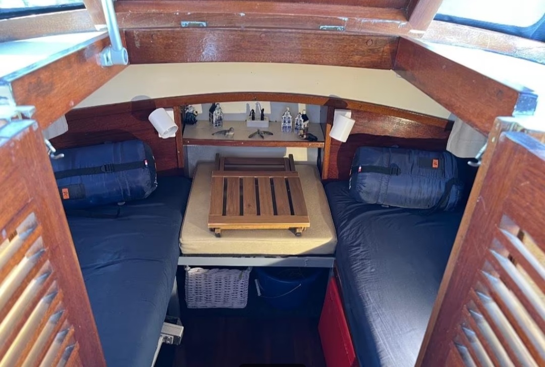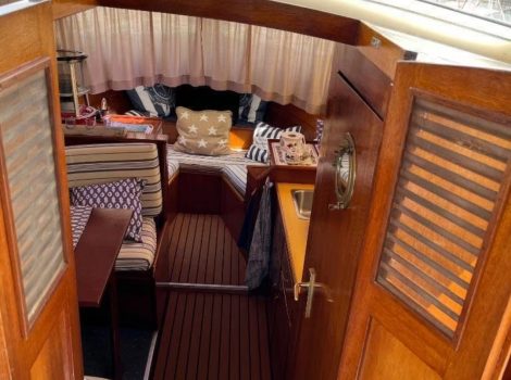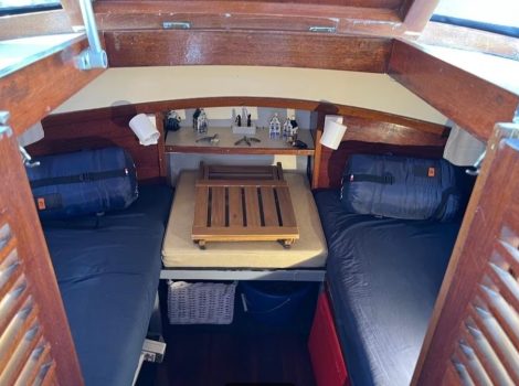 De binnenkant boot is helemaal gereviseerd (zie foto’s. met 2 slaapplekken in de kajuit (ombouw eettafel naar bed mogelijk). In de kleinere achterkajuit 2 slaapplekken. voor niet al te lange mensen.