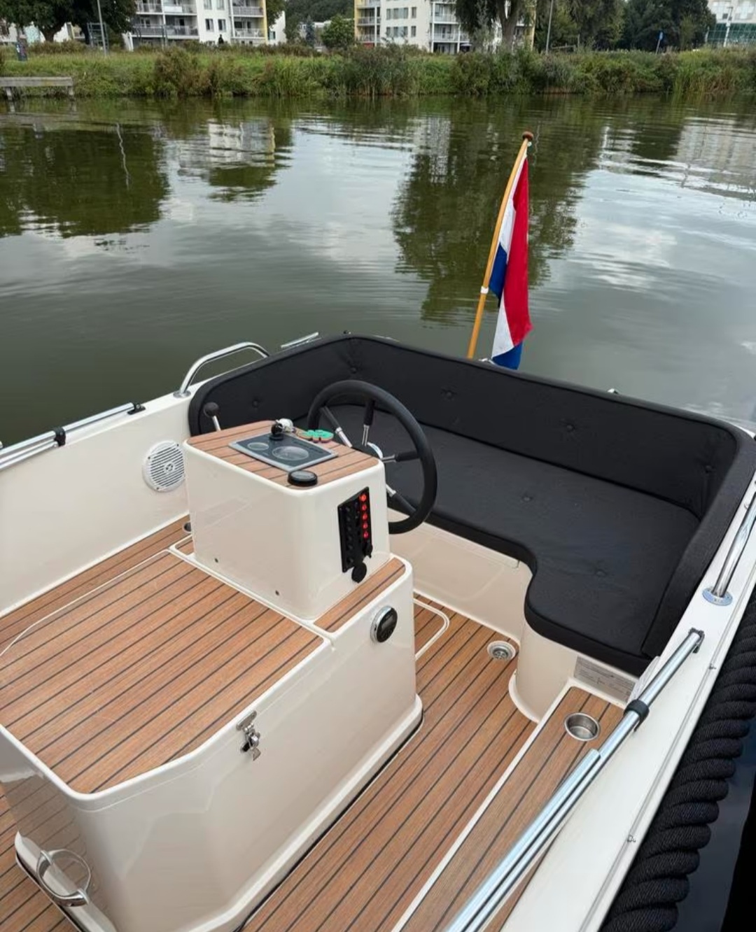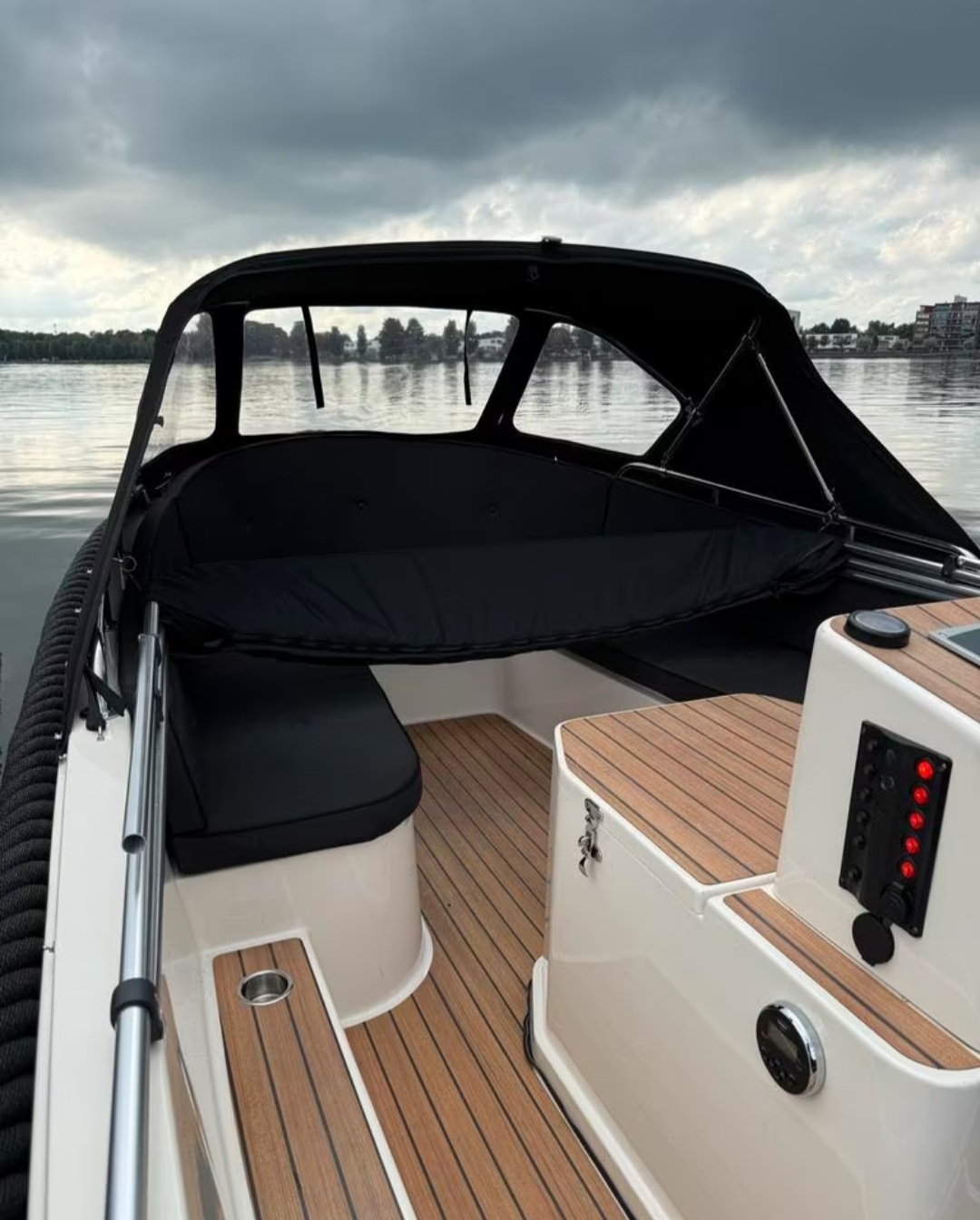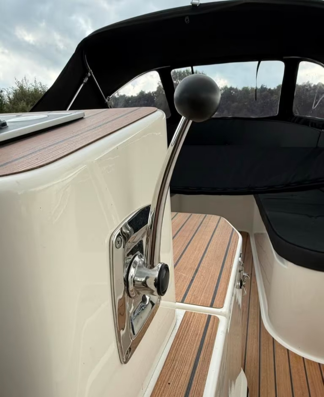 Extra’s en opties:- Exclusive zonnedek (staat niet op de foto)- Stijlvolle bekleding Markilux stof in antraciet- Navigatieverlichting- Sfeervol Teakline op de kuipvloer- Roestvrijstalen zwemtrap op het zwemplateau- Cabrioletkap met kuipzeil- houten vlaghouder- Voorzien van een chemisch toilet- Biminitop voor schaduw- radio- interne water pomp- fenders en touwen aanwezig