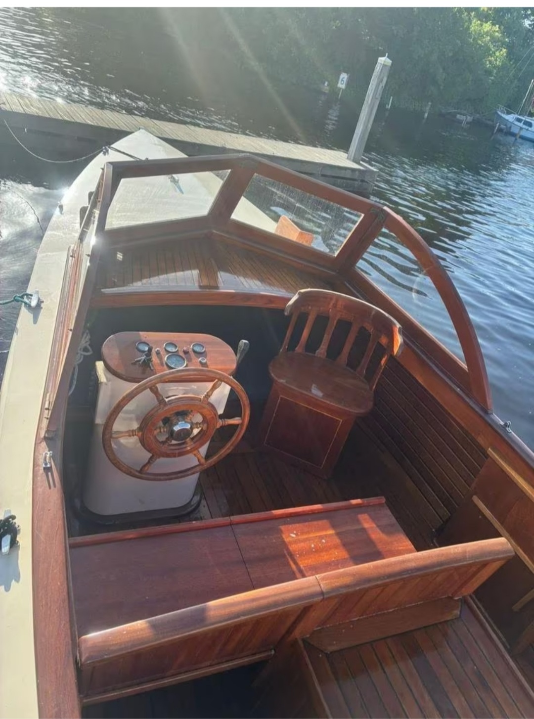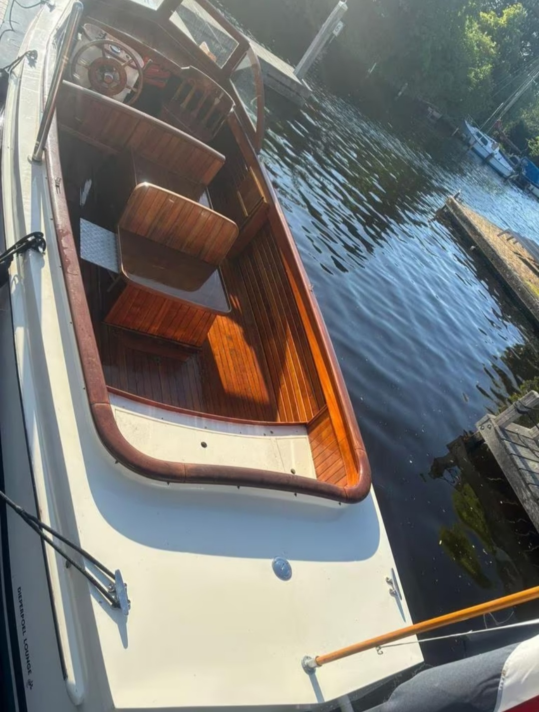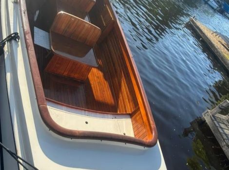 Uit erfenis verkregen!! (Foto’s zijn niet recent)Stalen Dieperpoel loungeAfmetingen 7.5 x 2,575 pk volvo penta diesel 6 cilinderRamen zijn scharnierend en zelfs uit te nemen zodat je onder de laagste bruggen door kan varen.De 55 KGF boeg schroef maakt van manoeuvreren en achteruitvaren kinderspel.Geheel gerestaureerde en gestraalde en in de epoxy gezette oude bakdekker, massief teak en mahony betimmerd.Voorin punt 2 primitieve slaaplekken.