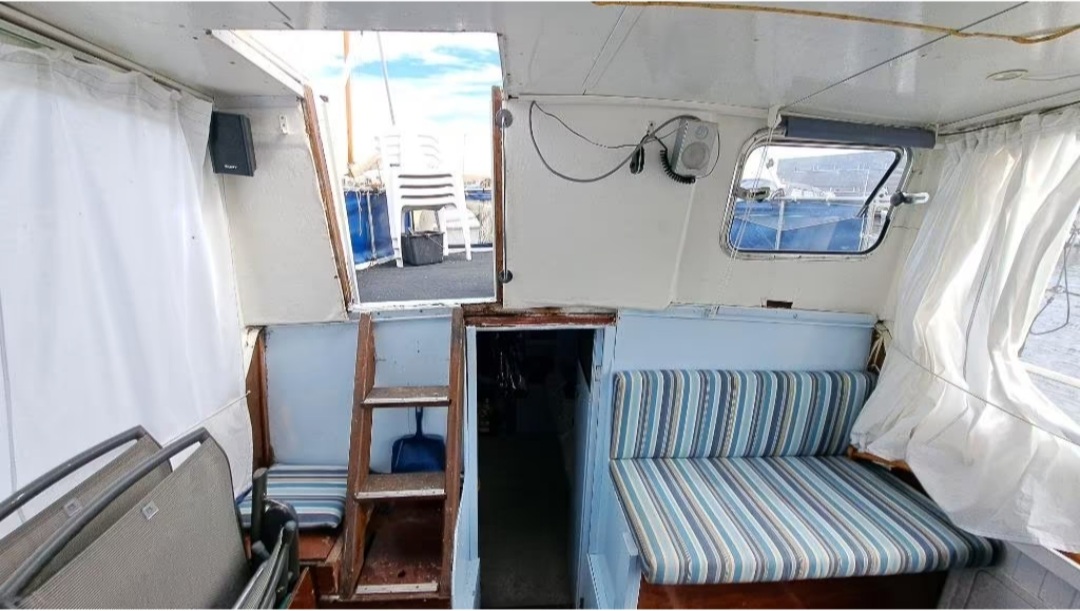Niet de boot maar de schipper heeft een mankement waardoor het varen minder leuk is. Daarom mag een nieuwe eigenaar zich aandienen. Een heerlijk schip waar we veel mee hebben gevaren door Nederlandse en Belgische wateren.Opgeknapt en verbeterd, in 2024 nog een grote schilderbeurt buitenom, bovenbouw in twee componenten, romp bootlakLengte 10,5 m, breedte 3,3 m, diepte 1m, vaste hoogte 2,48 m. het schip heeft nu een vaste ligplaats welke overgenomen kan worden.technische gegevensRompplaatdikte 3 mm, rondom geïsoleerd met glaswol , ramen in aluminiumlijsten6 slaapplaatsen. Stahoogte stuurhut en vooronder. +/- 1,95 m. slaapvertrek 1,70mVoorzien van ;Inboord 70 PK Ford Leman diesel met intercooler.Motorsteunen 4 jaar terug vervangenWatergekoelde uitlaatDubbele besturingBoegschroef ( Cuppa)Navigatie verlichting2 grote ankers en een kleinere,Voor- midden en achter boldersDiverse landvasten in verschillende lengte en dikte matenVenders diverse matenDavids met handlierenVaste RVS RelingBimiMarifoonkaartplotter Garmin3 accus; boegschroef, start en lichtBuiten aansluiting voor 220VZonnepaneel 130 WOmvormerAccuwachterWaterdruksysteemRvs drinkwatertank 200 LiterElektrische bilgpompElektrisch toiletVuilwatertank 60 LiterRingverwarming (Ebensprecher)Warm en koud water in de keukengasgeiser3-pits gasfornuis85 liter koelkastRuime voorraadkast (voormalige douche ruimte)slaapvertrek met vast 2persoons bed en wastafeltje