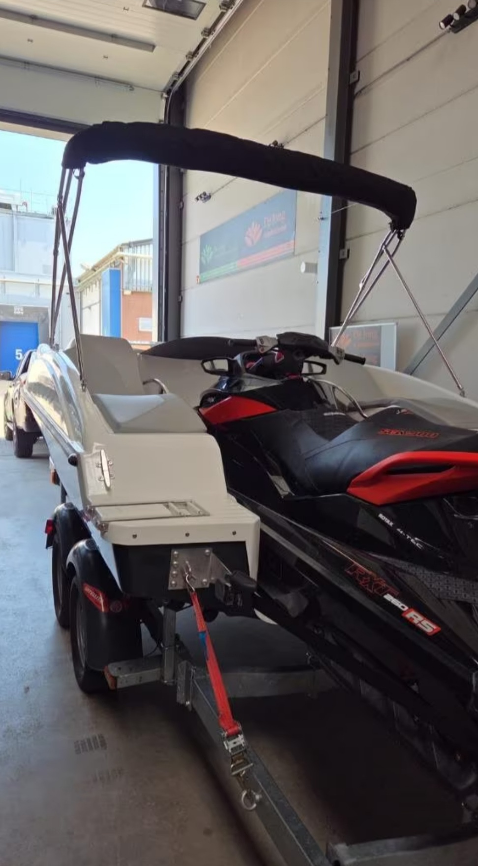 - Inclusief trailer, waarop zowel de boot als de jetski samen staan