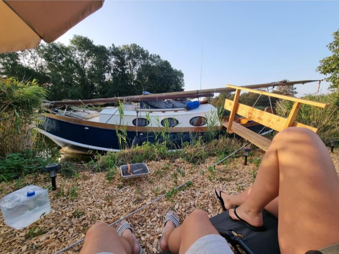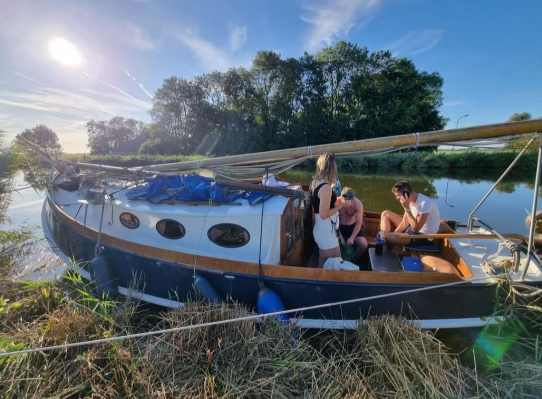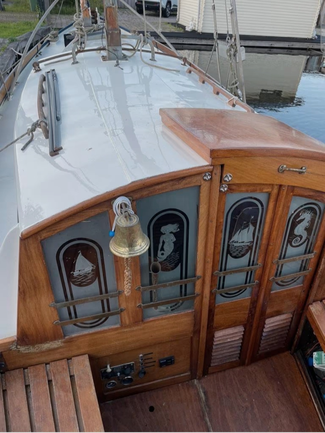 Vorig jaar geheel opgeknapt van binnen tbv de B&B plannen. Wegens tijdgebrek te weinig aandacht voor..Het houtwerk buitenom is toe aan wat onderhoudswerk. Dit zijn we nu aan het kaal halen en opknappen. De romp van staal is erg goed, 3 jaar terug nog volledig gedaan.
