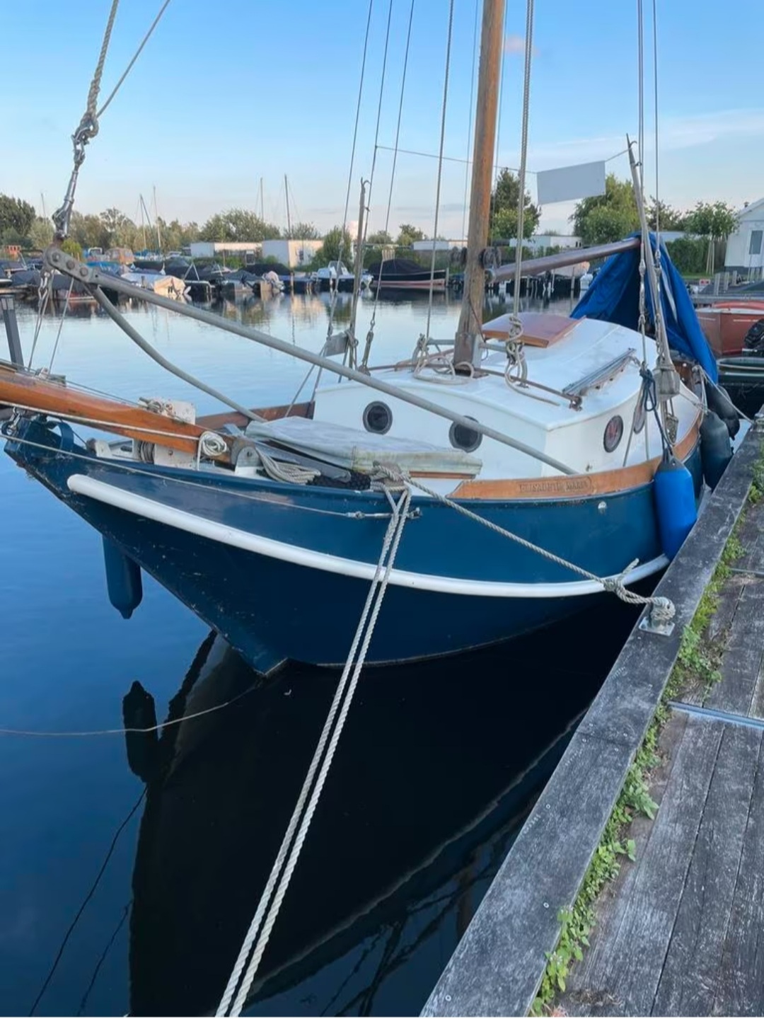 Voorzien van:- een oude dieselmotor, werkt goed.- pompwc- keukentje incl toebehoren- 2 slaapplekken in de punt- zitplekken met tafeltje- zeilen- etc.