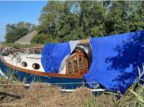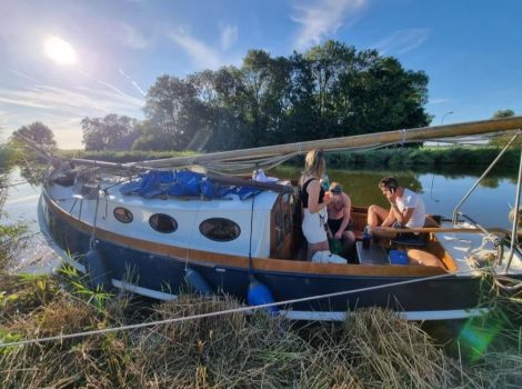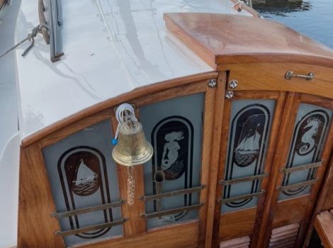 Vorig jaar geheel opgeknapt van binnen tbv de B&B plannen. Wegens tijdgebrek te weinig aandacht voor..Het houtwerk buitenom is toe aan wat onderhoudswerk. Dit zijn we nu aan het kaal halen en opknappen. De romp van staal is erg goed, 3 jaar terug nog volledig gedaan.
