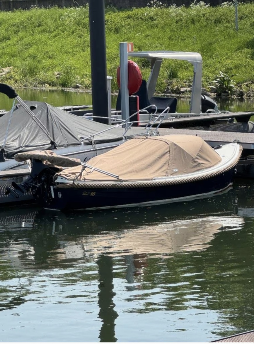 In 2023 heb ik de sloep opnieuw laten polijsten en de antifoullng laten vervangen op de werf van Arie Wiegmans in Breukelen. Tevens is de buiskap vervangen inclusief nieuwe bimini top.