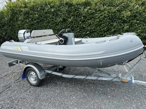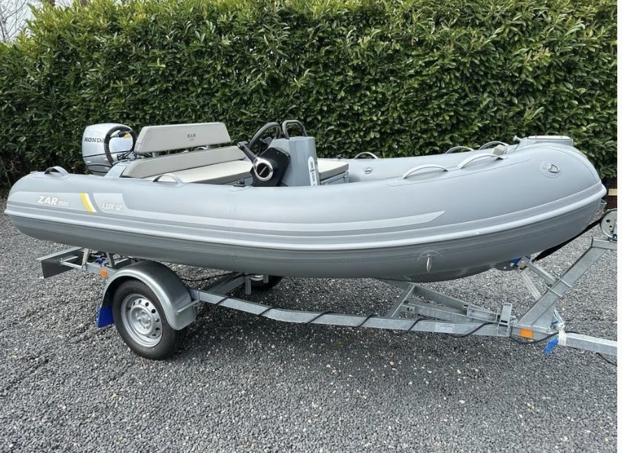 Nagenoeg ongebruikte ZAR Mini. Stuur inrichting Zar mini De Luxe, uitkratten, console, stuurknop en seadek.Honda buitenboordmotor BF 20 LRTU.ZAR Trailer.Afdekhoes.Begrensd met afneembare stang tot 13kmph.